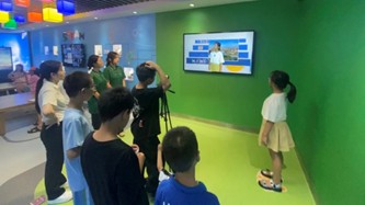 圖為“院長媽媽有約”社會實踐科普隊員為小朋友們科普氣象長廊。潘依琳供圖