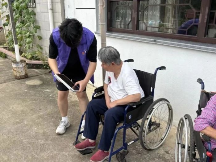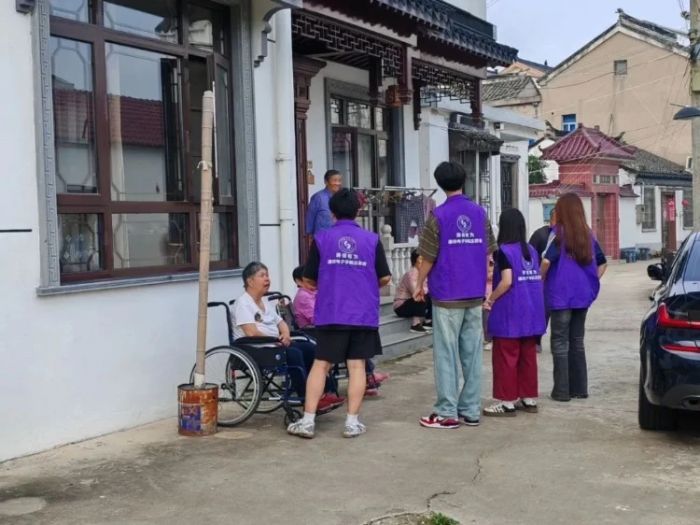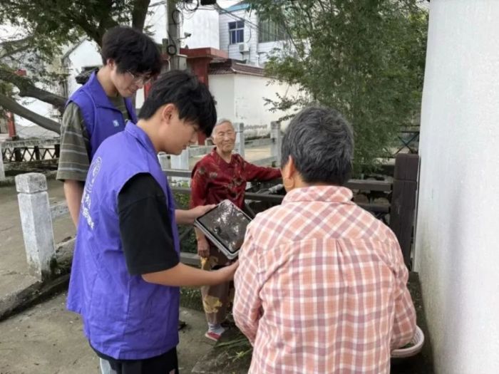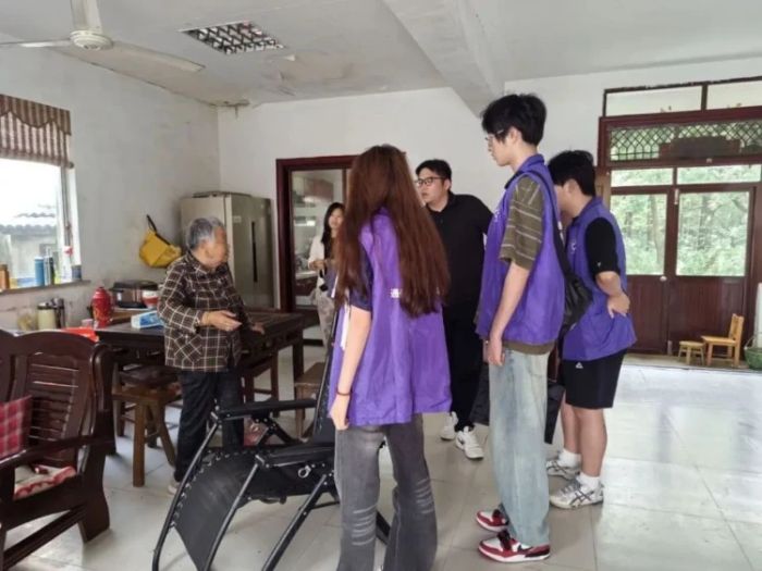 6月25日,團隊深入高齡老人家中。他們特別關注獨居與行動不便群體,分組開展“問卷+訪談”式深度調研,細致收集老年人在行動、如廁及夜間防跌倒等方面的迫切需求。同時,團隊成員對居住環境進行安全評估,重點排查地面防滑、扶手缺失及照明不足等隱患,并現場提供基礎改造建議。通過推廣防滑墊、助行器及智能監測設備等適老產品,有效提升了村民家庭的適老化意識。