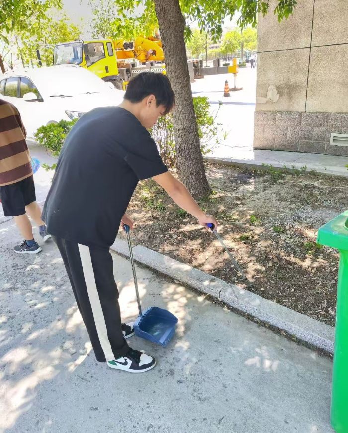 同一時段,社區綠化帶與公共道路旁,另一批志愿者的身影同樣忙碌。哈基咪成員王炳旭等手持工具,清理花壇里的雜物、撿拾路面垃圾。夏日陽光熾熱,他們的額頭掛滿汗珠,卻未停下腳步。在清理過程中,志愿者發現一處綠化帶因長期踩踏出現裸露土地,及時反饋給社區,推動設置警示標識,守護社區綠化環境。