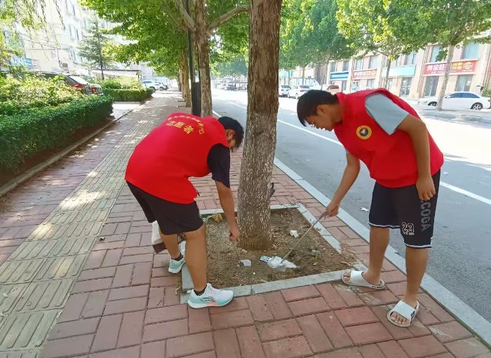 社區人行道旁,哈基咪的 “紅馬甲” 志愿者們手持工具,專注清理樹坑與綠化帶雜物。烈日下,他們俯身撿拾煙頭、紙屑,鏟除樹坑內堆積的塵土與垃圾。遇到被隨意丟棄的共享單車,志愿者們合力搬到指定停放點,并在社區群里呼吁規范停車。一趟又一趟的巡查、清理,讓社區道路旁的公共空間恢復整潔,也帶動不少居民自覺維護環境。