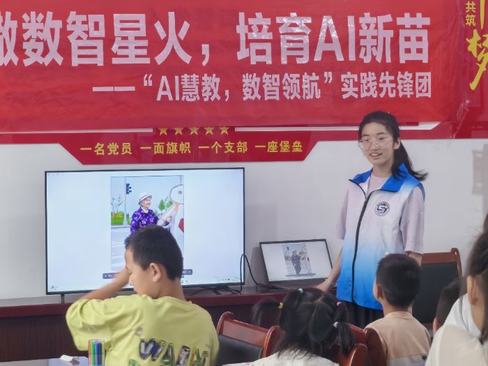 同時,隊員們為村民開展AI反詐宣傳,結合案例講解識別技巧。這群青年用腳步丈量鄉土,在鄉村振興長卷上暈染新色,既拓寬了孩子的眼界、增強了村民的防騙底氣,更以赤誠傳遞著“三下鄉”的溫度,讓AI賦能的星火點亮鄉村前路。
