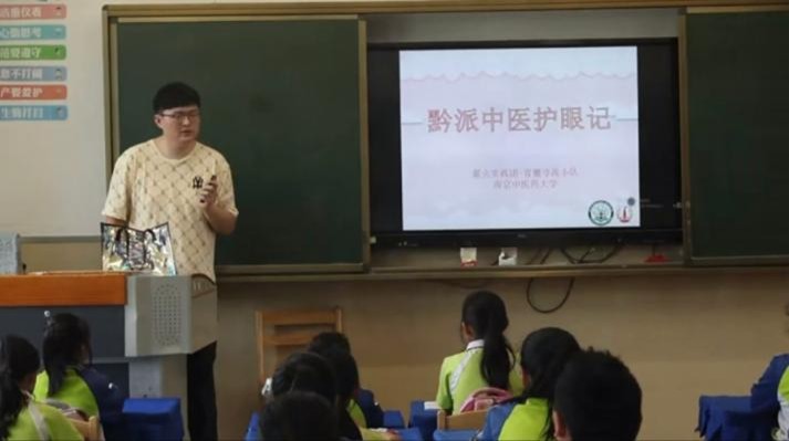 在小學(xué)課堂中,實(shí)踐團(tuán)成員通過輕松的小游戲與孩子們拉近距離,介紹了眼睛的基本結(jié)構(gòu)和日常保護(hù)的重要性,巧妙地將話題引向博大精深的中醫(yī)藥護(hù)眼智慧。互動環(huán)節(jié)中,隊(duì)員們分發(fā)了精心制作的中式護(hù)眼宣傳冊,并結(jié)合內(nèi)容進(jìn)行生動講解,穿插有獎問答,現(xiàn)場氣氛熱烈。