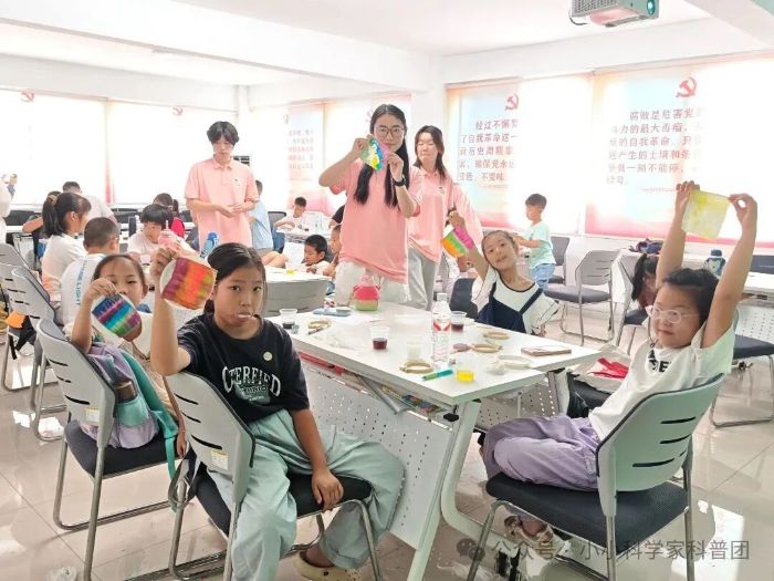 為了讓孩子們從生活現象中發現科學原理,激發對化學的興趣,“小小科學家”科普社會實踐團帶領當地小朋友們探索纖維的奧秘,通過互動游戲、實驗演示和動手實踐等豐富形式進行一場主題為“纖維的奇妙變身”的科普課。
