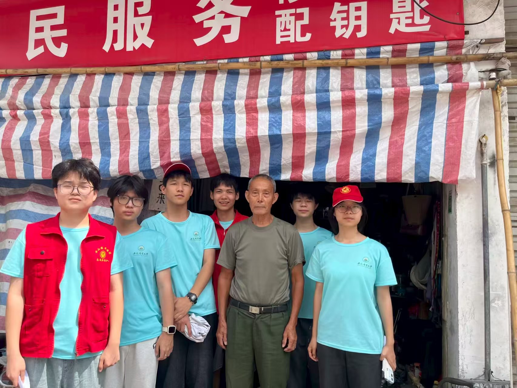 實踐團成員對退役老兵進行采訪,傾聽烽火歲月里的家國情懷。老人介紹到,我的名字是洪光中,1964年想法單純天真,就是想參軍報國。入伍我國中央直接領導的參謀軍,參與兩彈一星的爆炸工作。于1969年退伍,迄今為止還保持著軍人作風。當實踐團成員采訪到“退役后是否有接受過任何優待”。紅爺爺介紹到“我從來沒有因為我是軍人而向國家索取任何優待,習總書記說,幸福是奮斗出來的,擼起袖子加油干,所以我退役后來村子里學習修鞋、補鞋,自我謀生。取的名字叫便民服務,就是為了能夠服務人民”。當談到大學生參軍入伍時,紅爺爺講道:我對新的一代充滿希望和期望,我一直覺得新的一代比我們這一代聰明能干。最后,實踐隊員與爺爺合影留念。