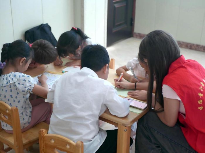 在寫字課程環節,實踐隊成員們細致地輔導小學生進行硬筆書法訓練。成員首先演示了正確的握筆姿勢和書寫技巧,隨后通過親自示范,引導孩子們細致觀察筆畫的起始、轉折及結束。孩子們在練習紙上逐筆模仿,逐步掌握了漢字書寫的基本要領。