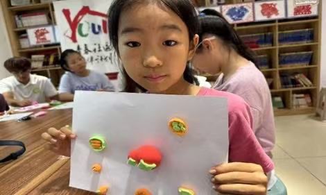 緊接著,活動到了動手又動腦的手工環節。志愿者們提前備齊材料,讓孩子們盡情施展想象力。在志愿者的耐心幫助下,一個個造型各異的早餐食物手工作品陸續誕生。這一環節不僅讓孩子們感受到手工創作的樂趣,更讓他們在構思與動手的過程中,直觀地強化了對健康飲食的理解。