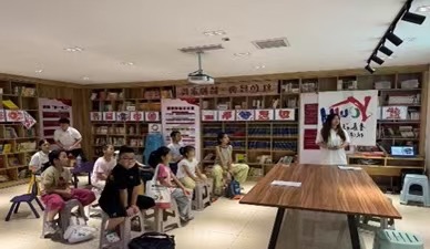 隨后進入趣讀繪本環節,志愿者們展示《肚子里有個火車站》,繪聲繪色地講述著小姑娘朱莉婭肚子里的故事。當聽到肚子里的小精靈因為朱莉婭狼吞虎咽和吃太多冰淇淋、巧克力奶昔而遇到麻煩,甚至舉行抗議活動時,孩子們時而緊張,時而大笑。這個充滿童趣的故事,讓孩子們在歡樂中明白了好好吃飯、健康飲食的重要性。