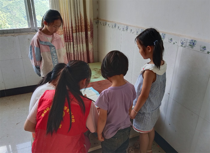 02 書桌相伴:讓普通話浸潤暑假時光 暑假里,村里的留守兒童成為志愿者們重點關懷的對象。在部分留守兒童家中,孩子們簇擁在志愿者身旁,嘰嘰喳喳詢問暑假作業的難題。志愿者們化身“小老師”,逐字糾正拼音發音;如果遇到孩子以方言表達,他們便含笑引導“試試用普通話再說一遍”。大家一同朗讀課文,以標準普通話講述故事,讓孩子們在輕松氛圍中體悟語言的魅力。書桌前的耐心陪伴,不僅為孩子們解開作業困惑,更讓普通話成為這個暑假最溫情的“伙伴”。