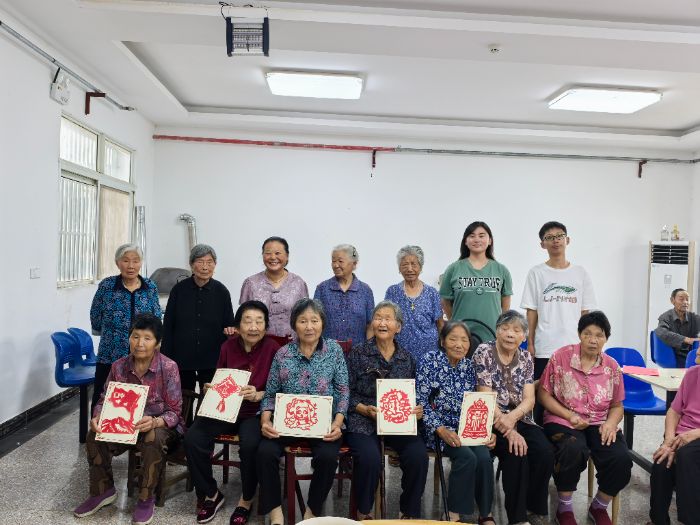 團隊不僅聚焦文化傳承與紅色育人,更以實際行動服務基層和傳遞溫暖,在文化創新中賦予紅色記憶新活力。為了踐行敬老愛老的傳統美德,團隊前往當地養老院,與老人閑話家常,傾聽他們的人生故事,同時還開展了“傳統手工藝教學”活動,教老人制作中國傳統剪紙與艾草錘,當老人們拿著自己完成的作品,臉上洋溢出孩童般的幸福笑容,這份“指尖上的互動”,不僅豐富了老人的精神文化生活,也讓傳統手工藝在溫情中得以傳承。