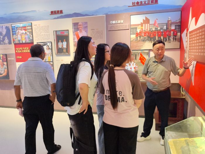 “紙上得來終覺淺,絕知此事要躬行。”團隊走進杜樓暴動舊址——杜樓村,聽當地綜合文化站站長汪軍講解杜樓暴動的背景、過程與意義,團隊主動與當地老人交流先輩抗戰往事,讓“銘記歷史、緬懷先烈”從口號化為心底烙印;隨后,團隊跟隨汪軍站長參觀洪集鎮紅色文化展覽館,探尋“古、紅、文、武、綠、和”六韻文化,又在講解員引導下走訪龍口井、清真寺、雙墩墓等地標性建筑,用鏡頭與文字助力文化傳播。