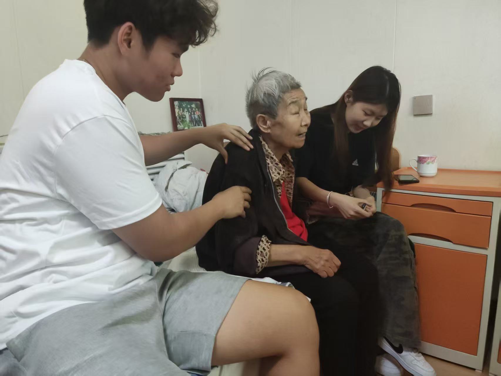 圖為實踐團成員給老人按摩肩膀,剪指甲