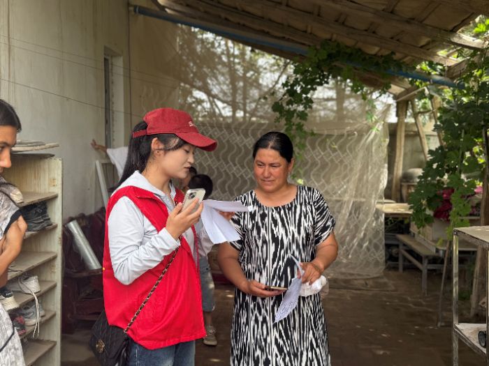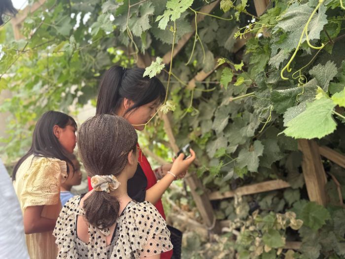 此圖為團隊隊員入戶調研葡萄常見病害 董喬喬 供圖