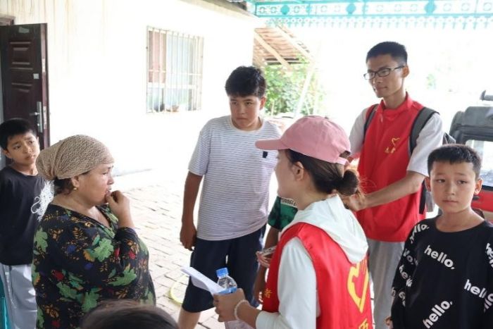 圖為實踐隊員在向居民進行答疑解惑。曹渭荻供圖