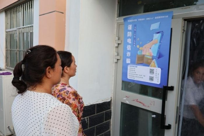 此圖為居民們觀看反詐宣傳海報。曹渭荻供圖