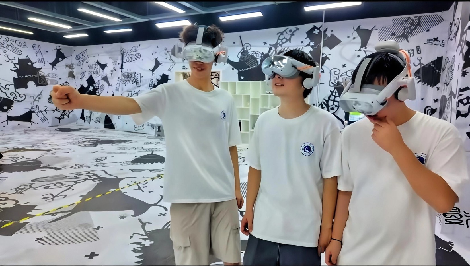 圖為團隊在劍門關景區體驗VR科技賦能文旅發展現狀。