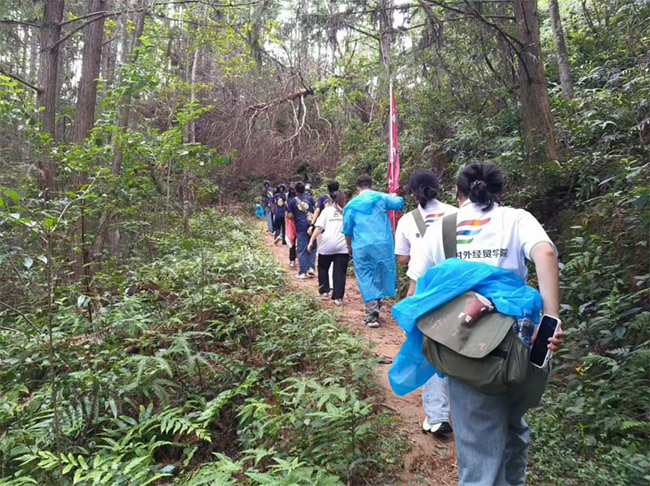 為深刻探尋革命起點,深化學(xué)習(xí)教育成效,將革命精神轉(zhuǎn)化為時代探索和現(xiàn)實傳承,重慶對外經(jīng)貿(mào)學(xué)院“紅巖”先鋒志愿服務(wù)團于8月14日踏上革命圣地井岡山,在茅坪鎮(zhèn)馬源村的崎嶇山徑間重走紅軍路,在八角樓的斑駁光影中感悟真理力量,在黃洋界的巍巍雄關(guān)上聆聽歷史回響。青年學(xué)子們在崎嶇山路上踐行先輩意志,在鄉(xiāng)村小道中砥礪奮斗初心,在紅色遺址里承襲革命精神。