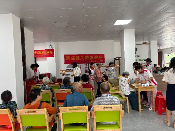除了基礎(chǔ)體檢,團(tuán)隊(duì)還悄悄加入了健康科普環(huán)節(jié)。休息區(qū)里,成員們圍在老人身邊,翻開圖文并茂的《老年健康安全手冊(cè)》,逐頁(yè)講解高血壓、糖尿病等慢性病的預(yù)防和治療知識(shí)。針對(duì)老人可能遇到的跌倒、噎食等突發(fā)情況,成員們還現(xiàn)場(chǎng)演示應(yīng)急處理方法,老人們聽得認(rèn)真,有的還跟著模仿,希望學(xué)會(huì)這些實(shí)用技能。