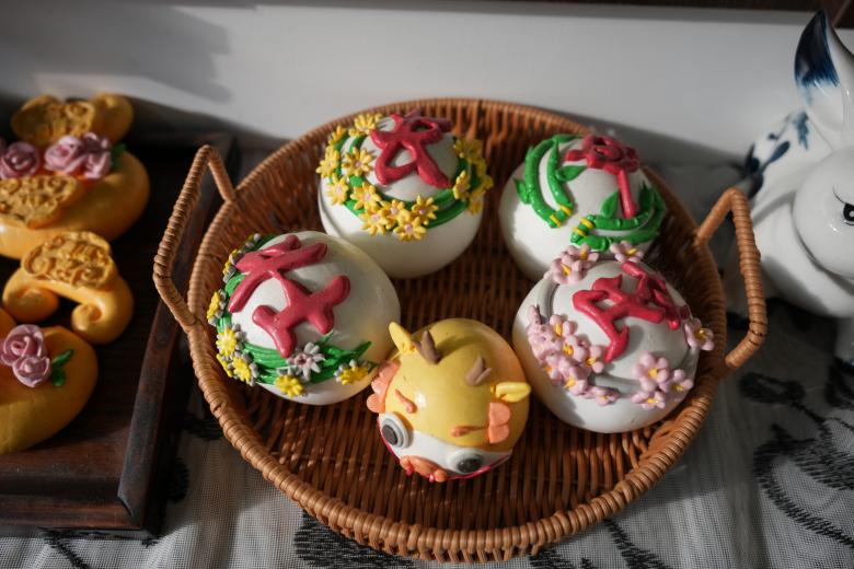 在淮北,花饃是承載民俗文化的重要載體。高斯雅在傳統(tǒng)造型基礎(chǔ)上,融入新中式美學(xué)和流行元素:訂婚系列的龍鳳呈祥、端午禮盒的粽子造型、高考季的"鯉魚躍龍門",都深受年輕人喜愛。她解釋:"年輕人愿意為情緒價值買單,但前提是讓他們覺得,這不僅是饅頭,更是能拿得出手的文化禮物。"