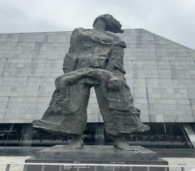 經過一段時間的行駛,我們順利抵達紀念館。在紀念館門口,我們首先被那座莊嚴肅穆的雕塑所震撼,雕塑上刻著“南京大屠殺遇難同胞紀念館”的字樣,下面則是無數遇難者的浮雕,讓人不禁肅然起敬。在紀念館門前,我們進行了簡短的默哀儀式,以表達對遇難同胞的哀悼和尊重。