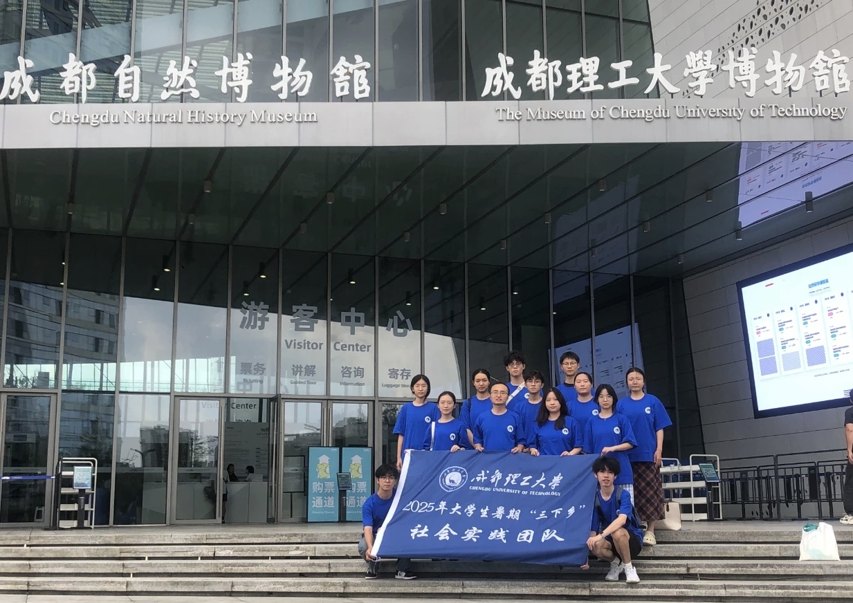 7月1日清晨,成都理工大學自然博物館門前的晨光中,“核輝礪盾・箭溯長風”社會實踐團隊的20余名成員身著統一藍色實踐服,整齊列隊在“成都自然博物館”與“成都理工大學博物館”的雙標牌下,舉起印有三下鄉社會實踐團隊的旗幟合影——這場為期15天的“三下鄉”實踐活動,以博物館專題宣講為起點,正式拉開序幕。