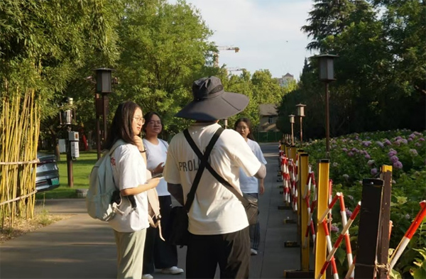 圖6:團(tuán)隊(duì)在小雁塔前進(jìn)行討論