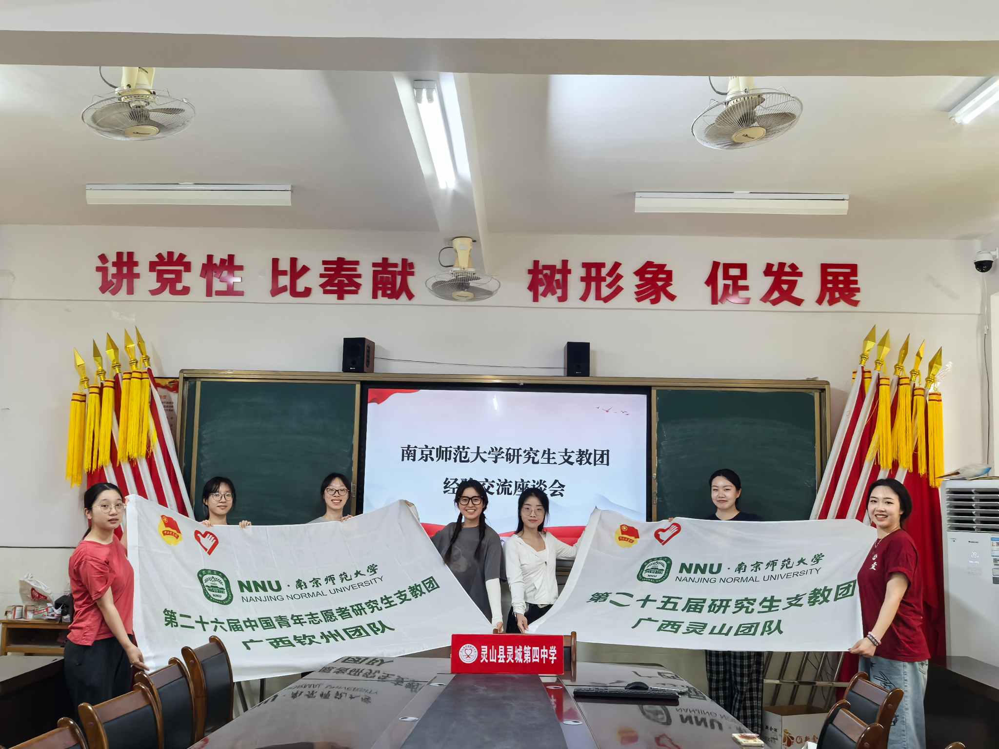 圖為團隊成員與支教志愿者在靈山縣靈城第四中學(xué)開展經(jīng)驗交流座談會。吳星睿 供圖 “支教團成員通過重返課堂、師生座談、勵志講座等形式,為學(xué)生帶來溫暖與力量。這充分證明,愛與責(zé)任可以跨越時間和距離,志愿精神將薪火相傳、生生不息。”靈山縣靈城第四中學(xué)校長李偉光評價道。