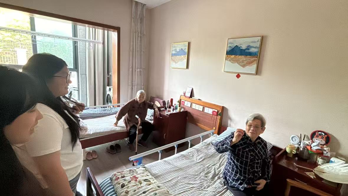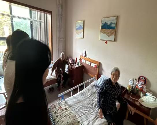 除了集體活動(dòng),志愿者們還分組走進(jìn)行動(dòng)不便的老人的房間,開(kāi)展一對(duì)一陪伴。他們坐在老人床邊,耐心傾聽(tīng)往事,細(xì)心詢問(wèn)起居飲食與身體近況,閑話家長(zhǎng)里短。在李爺爺?shù)姆块g,志愿者不僅認(rèn)真聆聽(tīng)他年輕時(shí)的奮斗故事,還為他朗讀當(dāng)天的報(bào)紙新聞。“孩子平時(shí)忙,沒(méi)什么人說(shuō)話,你們一來(lái),我心里就亮堂多了。”李爺爺緊緊握住志愿者的手,不舍得放開(kāi)。