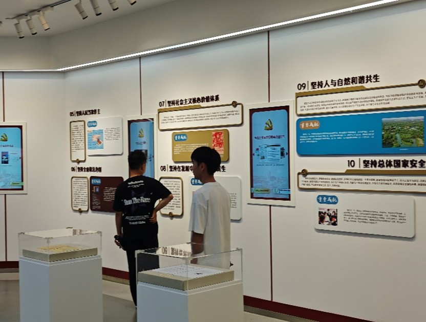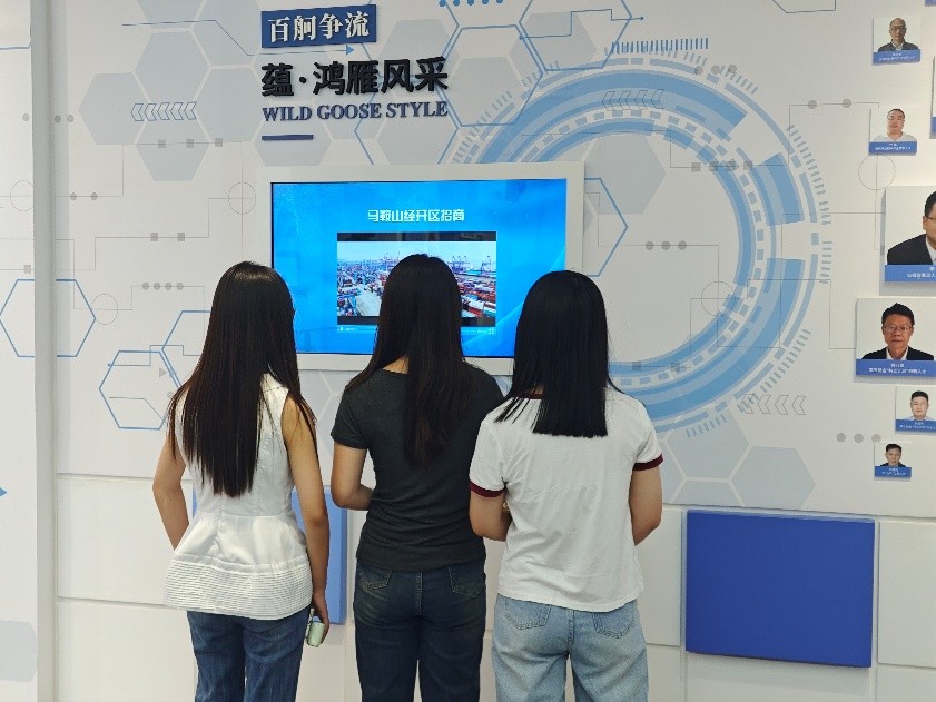 隨后,眾人來到黨建主題展廳。這里以豐富多樣的展示形式,集中呈現了習近平新時代中國特色社會主義思想的核心要義、習近平總書記考察安徽重要講話精神,以及馬鞍山本地黨史、先進模范人物事跡和全市組織工作特色亮點。通過多媒體互動、實物展示等手段,我們更直觀、更深入地理解了黨的創新理論和馬鞍山黨建工作的豐碩成果。