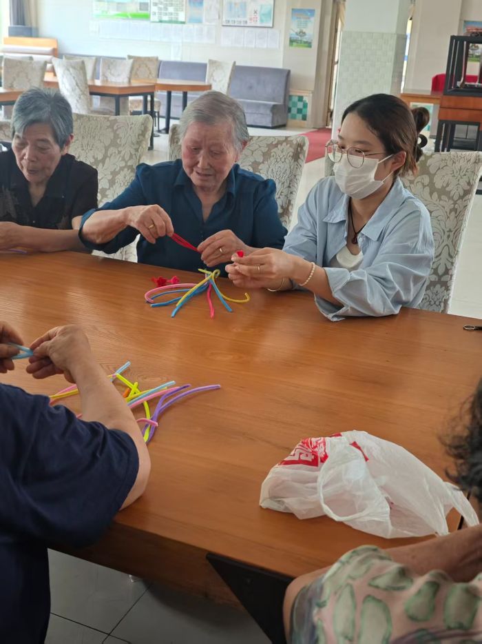 2025年6月26日,馬鞍山市岱山森林老年公寓里暖意融融,皖江工學(xué)院藝術(shù)設(shè)計(jì)學(xué)院“三下鄉(xiāng)”“青禾暖巢行動(dòng)”志愿服務(wù)隊(duì)的隊(duì)員們,帶著愛(ài)心與熱情走進(jìn)這里,通過(guò)手工課堂、暖心陪伴、環(huán)境清掃等多樣活動(dòng),為老人們送去關(guān)懷,讓老年公寓處處洋溢著歡聲笑語(yǔ),書(shū)寫(xiě)了一段青春與夕陽(yáng)交織的溫情故事 。