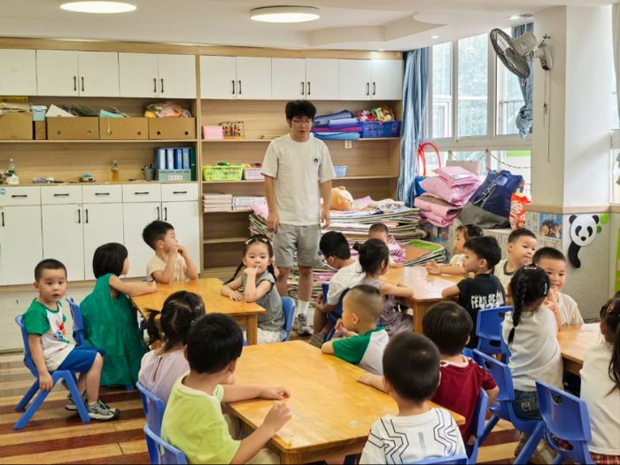 “老師,那些叔叔阿姨好厲害,我以后也要做厲害的人!”活動結束后,大班小朋友朵朵拿著自己畫的“科學家”向志愿者分享。為讓精神傳遞更貼合幼兒需求,團隊每天都會進行15分鐘復盤調整,當發現“貼花表達敬意”環節時間不足時,立刻延長互動時長,用耐心與細致保障活動效果。從紅色兒歌傳唱到科學小實驗演示,從主題角布置到情景游戲開展,志愿者們用孩子能懂的語言和動作,將“堅持、勇敢、團結”的精神內核傳遞給每一個孩子。