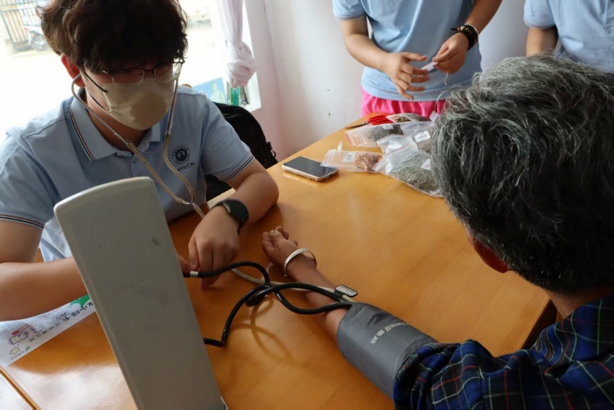 圖為隊(duì)員為老人測(cè)量血壓(邢紫影攝)