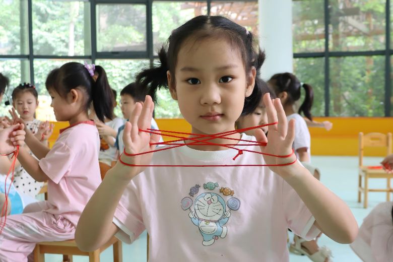 “求木之長者,必固其根本”,非遺是民族文化根系。翻花繩游戲環(huán)節(jié),志愿者化身“技藝傳遞者”,演示“雙船渡河”“降落傘”等經(jīng)典造型。孩子們圍坐成圈,專注模仿,從生疏到熟練,一根根彩繩化作靈動圖案。