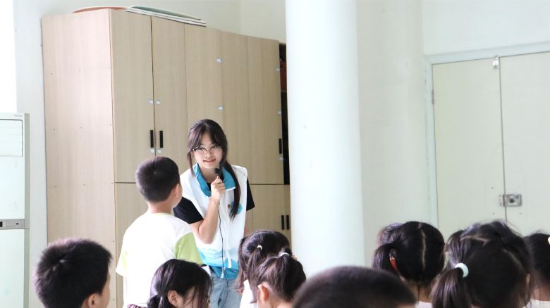 伴隨著舒緩的古典音樂,太極教學正式展開。志愿者以“起勢如松立,云手似水流”的口訣,帶領(lǐng)孩子們學習基礎(chǔ)招式。一招一式間,孩子們模仿“白鶴亮翅”“野馬分鬃”,在剛?cè)岵娜ㄖ懈惺軅鹘y(tǒng)武術(shù)的獨特韻味,體會非遺文化中蘊含的力量與柔美。