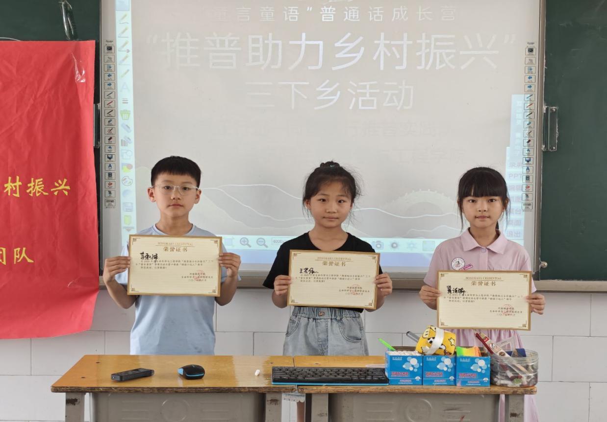 為筑牢鄉村振興語言基石,助力少年兒童普通話能力提升,6月29日,河南城建學院生命科學與工程學院“音正行遠——同音共行推普實踐隊”,在平頂山市魯山縣辛集鎮肖老莊村小學,為二年級學生開展“童言童語”普通話成長營活動,以趣味教學點燃鄉村孩子的語言熱情。
