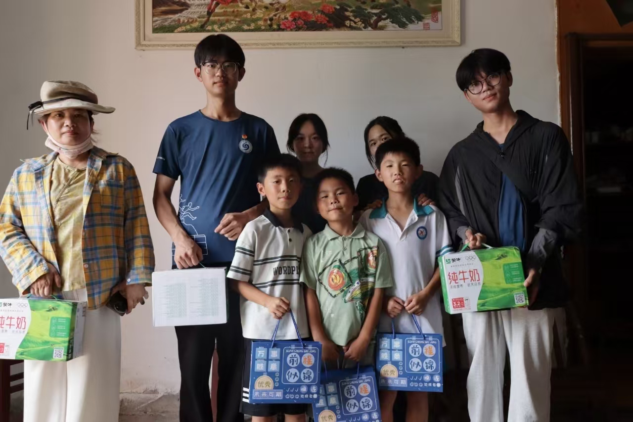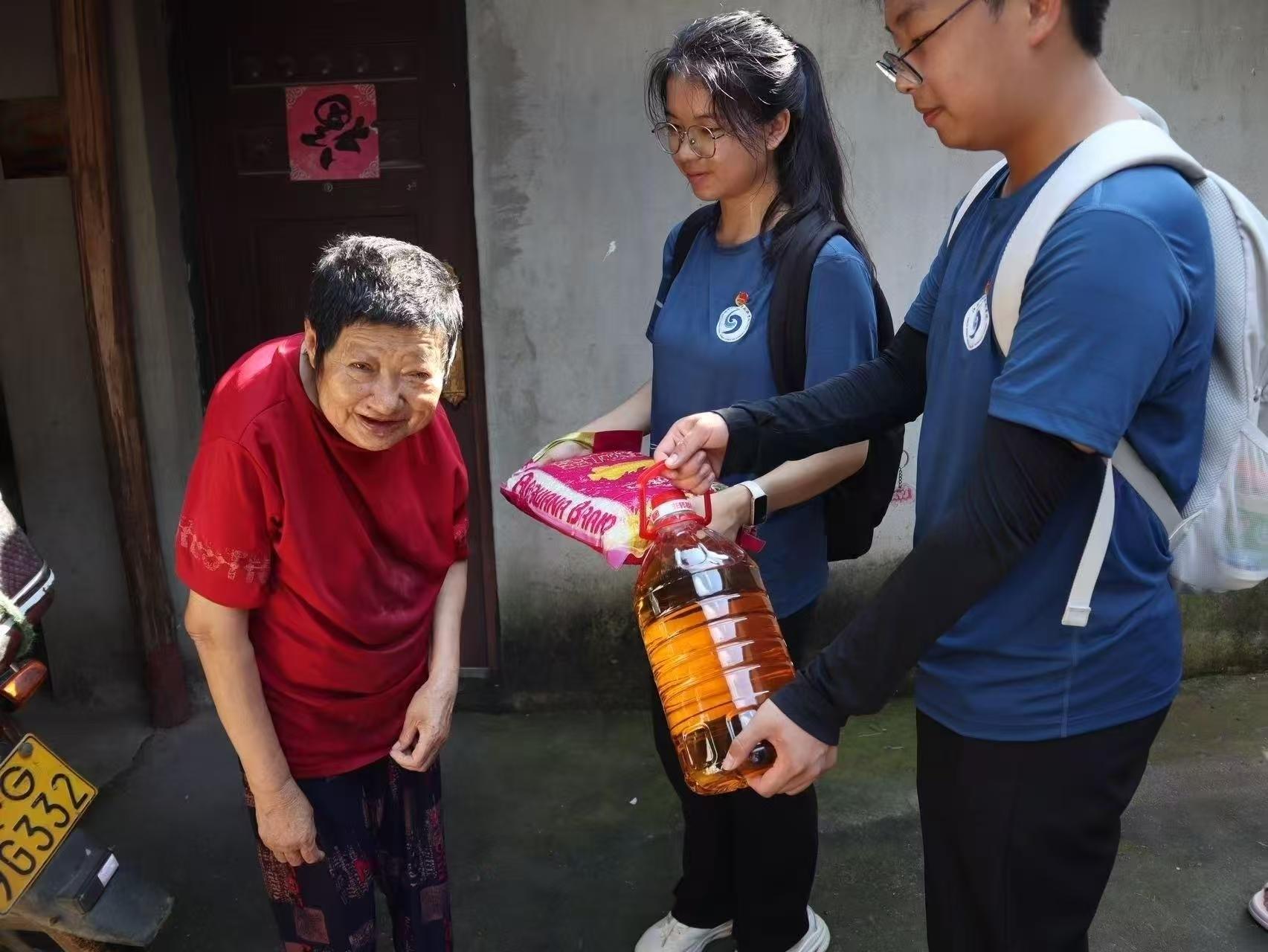 下午,全體隊員前往慰問栗坂村中的幾戶老人兒童。大家為老人送去生活物資、陪他們閑話家常,為孩子送去文具和牛奶。這些細微的陪伴不僅給予了老人和兒童情感慰藉,更傳遞出“被牽掛、被重視”的溫暖力量,填補了留守群體在精神層面的空缺。同時,這種實踐增強了團隊成員的社會責任感,形成“奉獻—反哺”的良性循環,助力鄉村精神文明建設。