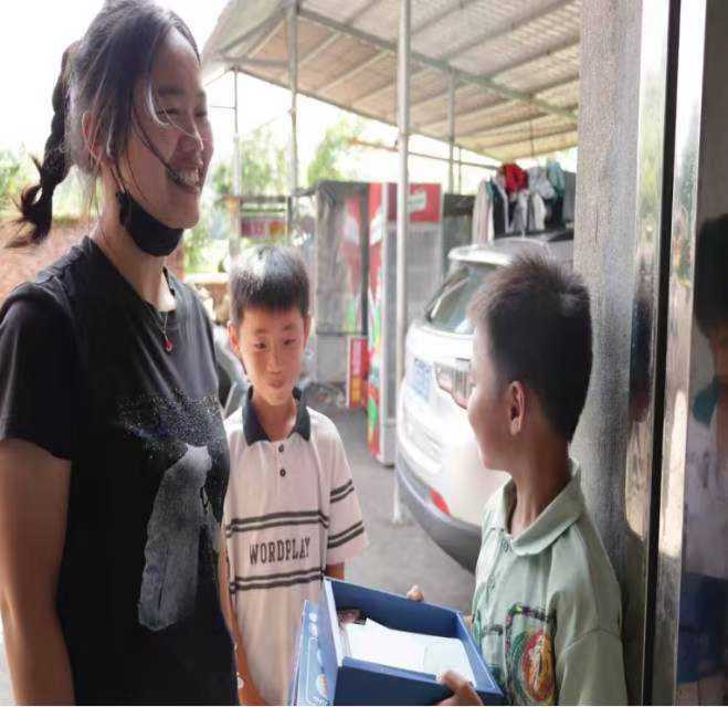 慰問首站來到劉倩姐姐家中。三個孩子擠在門框邊張望,眼睛里盛著好奇與羞澀。當慰問文具遞到他們手中時,最小的孩子咧嘴笑了,缺了門牙的笑容像一朵小小的向日葵。