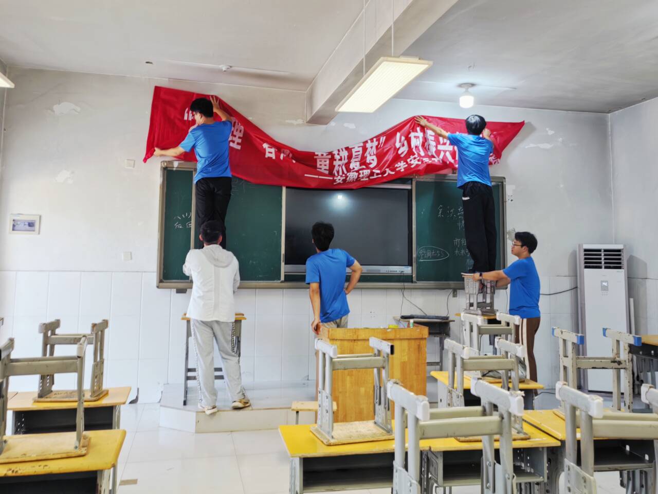 為實(shí)現(xiàn)青年抱負(fù),助力鄉(xiāng)村振興,2025年6月29日,安徽理工大學(xué)“以‘理’春風(fēng),童耕夏夢(mèng)”鄉(xiāng)村振興團(tuán)奔赴安徽省阜陽(yáng)市潁上縣賽澗中心學(xué)校及周邊地區(qū)開展為期一周的“三下鄉(xiāng)”暑期社會(huì)實(shí)踐活動(dòng)。此次活動(dòng)不僅涵蓋了防溺水、防中暑等安全知識(shí)普及,還精心設(shè)計(jì)了剪紙教學(xué)、科普實(shí)驗(yàn)等多樣化興趣課程,并將紅色教育融入其中。