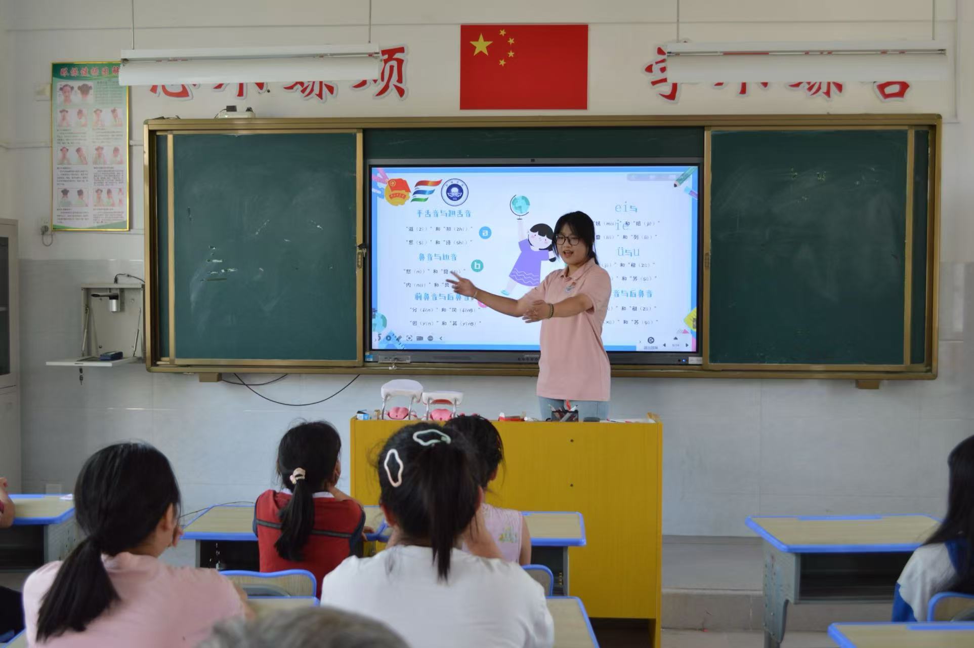 普通話普及課程中,實踐隊充分發揮專業優勢,通過朗誦詩歌、繞口令比賽等方式,激發學生們學習普通話的熱情。隊員們耐心糾正學生們的發音問題,鼓勵大家大膽開口說普通話。在朗誦環節,孩子們用稚嫩而認真的聲音朗誦著詩歌,展現出對普通話學習的濃厚興趣。“以前我說普通話總是有點害羞,現在覺得說普通話很有趣,我要說得更好!”一名學生開心地分享道。