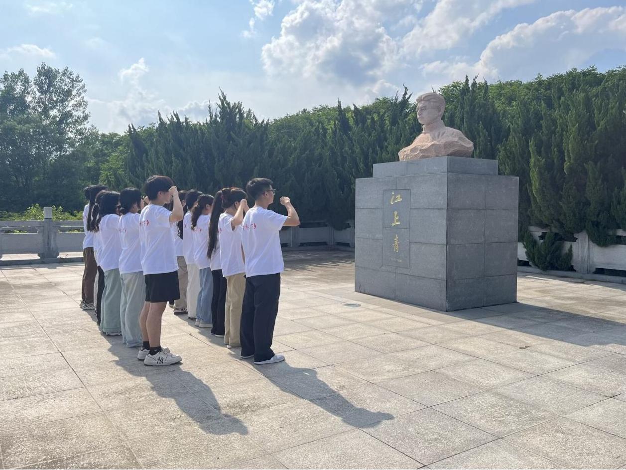 與此同時,社會實踐組于當日下午3時抵達江上青烈士紀念園。同學們有序參觀江上青烈士之墓,認真聆聽烈士英勇事跡,深刻感悟革命先輩崇高精神。江上青烈士半身像前莊嚴重溫入黨誓詞,彰顯了合肥大學學子傳承紅色基因、賡續精神血脈的堅定決心。隨后,團隊成員深入參觀江上青紀念館,通過珍貴的歷史文物與詳實的史料記載,進一步了解烈士生平,汲取奮進力量。