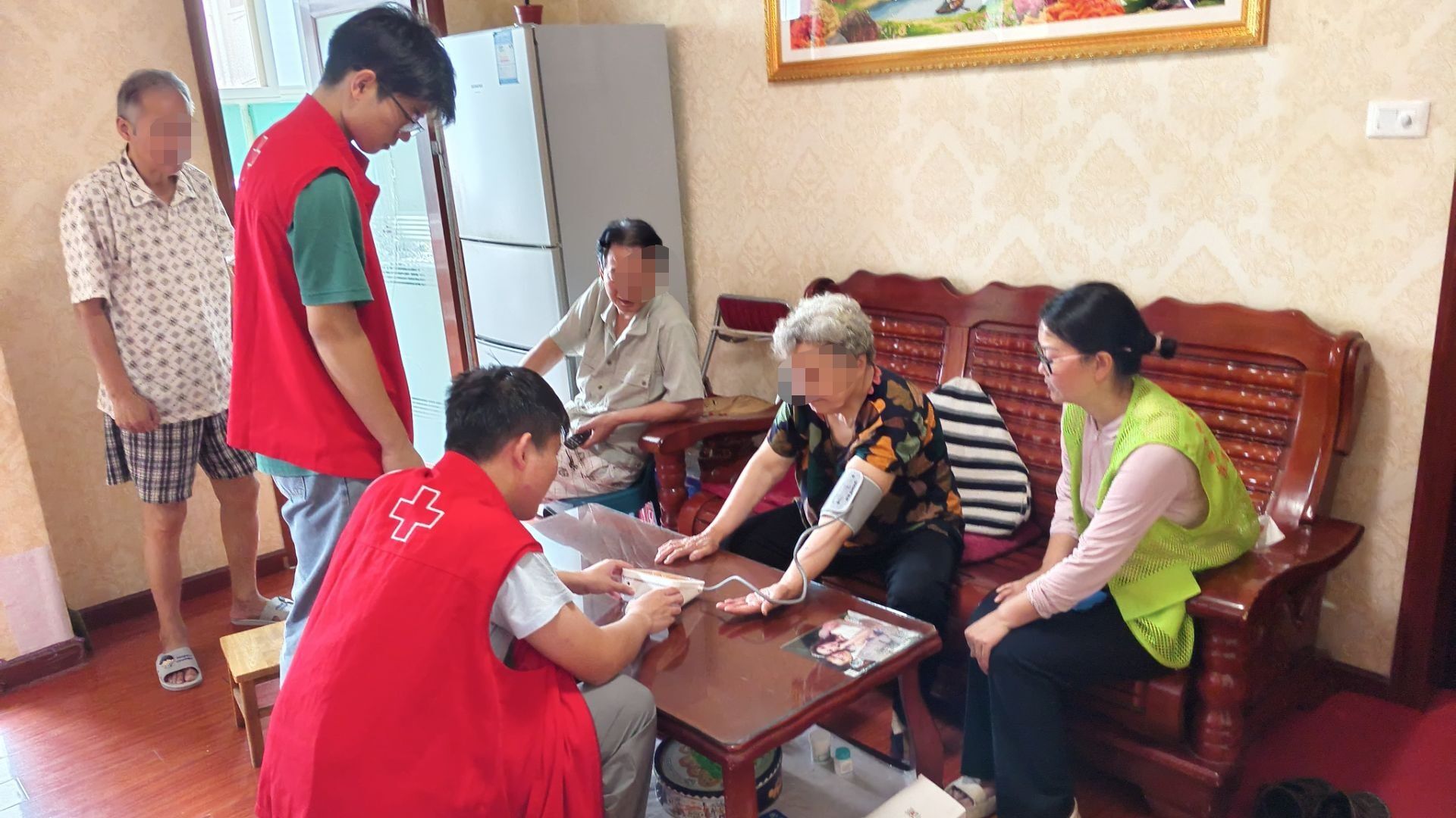 活動中,實踐隊成員與陽光社工分組走訪了多戶精神障礙患者家庭,除了通過面對面交流,詳細詢問患者的病情恢復、服藥情況、生活狀態及家庭照護需求外,具備相關技能的成員還攜帶專業血壓儀為患者及其家屬同步測量血壓,進行基礎健康監測。團隊成員結合專業知識,為患者及家屬提供心理健康指導和基礎健康建議,并協助社工完善個人檔案,為后續精準跟蹤服務提供了更全面的依據。
