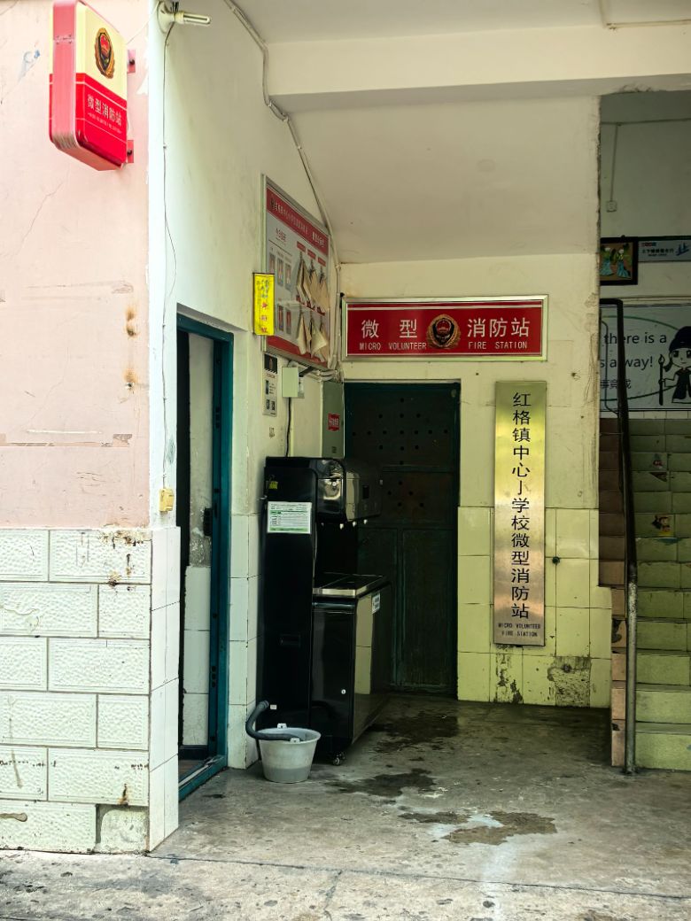 除此之外,志愿者在參觀小學的同時還對小學的安全設施做了一個排查:發現紅格鎮中心學校的消防設施比較缺乏,比如滅火器不夠等等問題;但值得鼓勵的是,學校設有微型消防站。微型消防站的建立,不僅提升了學校的消防安全水平,更為師生提供了一個直觀學習消防知識的平臺,實現校園安全隱患的實時監測和快速響應。