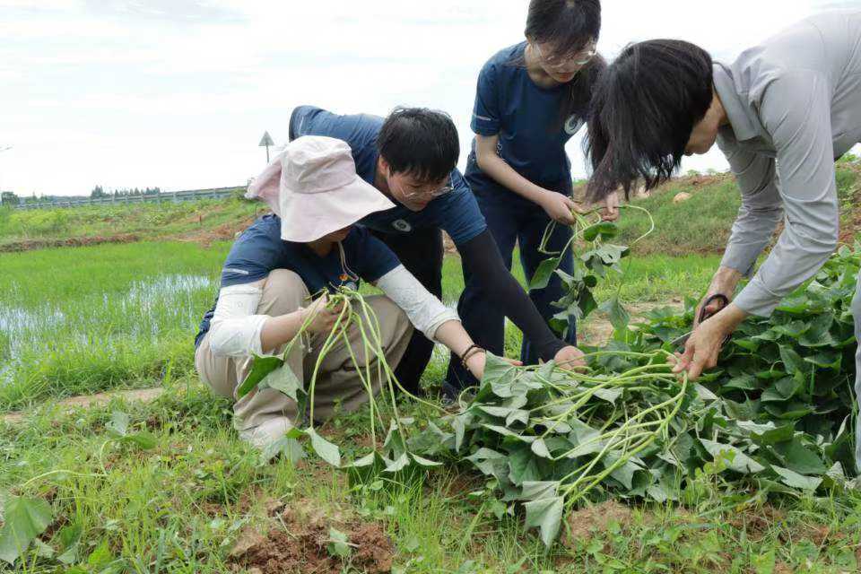 看似簡(jiǎn)單的動(dòng)作卻讓我們手忙腳亂泥。土沾滿褲腿時(shí),我們才真正明白“粒粒皆辛苦”的含義。夕陽(yáng)西下,新栽的薯苗在風(fēng)中輕擺,仿佛與兩位采訪對(duì)象的身影重疊——他們何嘗不是鄉(xiāng)村沃土里頑強(qiáng)生長(zhǎng)的“苗”,用平凡的力量滋養(yǎng)著這片土地?