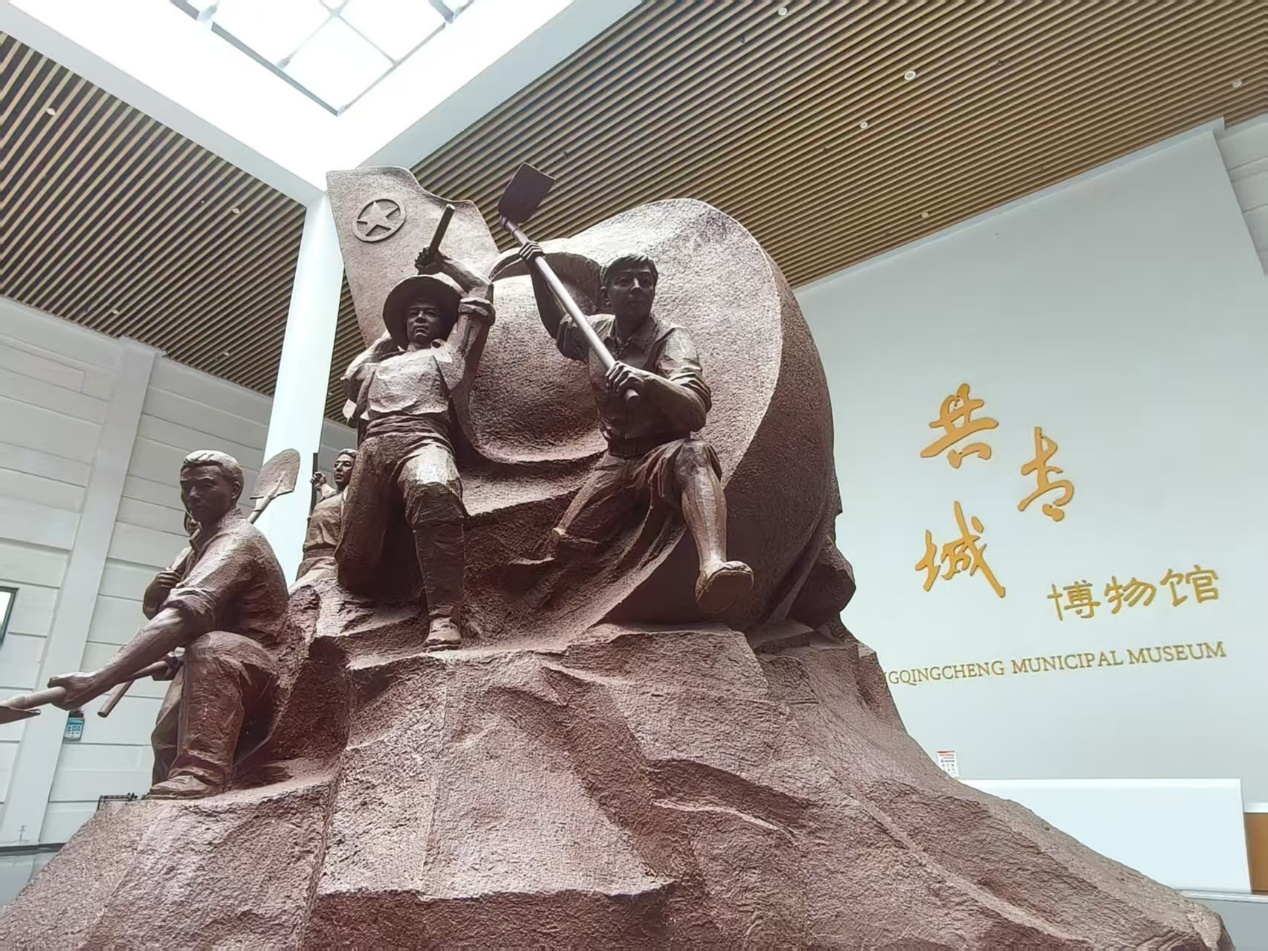實踐隊前往共青城市博物館,了解共青城市的蛻變歷史,體會墾荒創業的艱辛刻苦。踏入博物館,映入眼簾的是共青城市“開路先鋒”的栩栩如生的雕塑,仿若20世紀50年代堅忍不拔、開拓奮進的上海青年志愿者們就站立在我們面前。他們昂首挺胸,干勁十足,有的揮著鋤頭,有的拿起鐵鍬,有的舉起拳頭,眼里充滿著希望。         接下來,實踐隊員紛紛走進展館,了解共青歷史,感受“堅韌不拔、艱苦創業、崇尚科學、開拓奮進”‌的共青精神。雙眼觸及之處,絕不僅僅只是一面墻、一段文字、一尊雕塑,還是半個多世紀以來,幾代共青人在鄱陽湖畔的荒灘野嶺灑下的青春和汗水,他們開辟了一片新天地,完成了從共青社到共青墾殖場,到共青城開放開發區,再到共青城市的蛻變,建起了一座新城市。