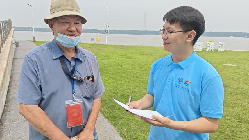 6月27日,調研團繼續深入實地開展調研,來到幕燕濱江風貌區和魚嘴濕地公園,成員對不同年齡段、不同身份的游客進行調研采訪。調研重點圍繞長江江豚生存現狀等問題,通過問卷及訪談了解公眾對江豚生存情況、威脅因素的認知,以及保護活動參與度,并探究公眾對江豚習性等珍稀物種的了解深度。