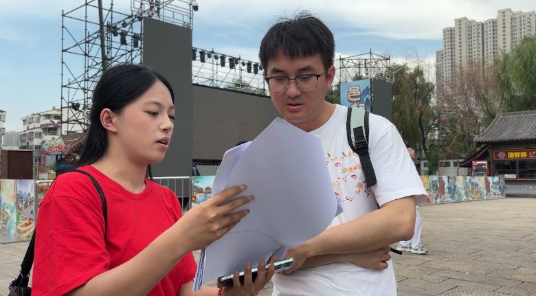 調研過程中,實踐隊兵分多路展開工作:一方面設計針對性問卷,聚焦游客體驗、商戶運營、本地居民生活影響等維度,回收有效問卷;另一方面與不同群體展開深度對話,從西安游客對文化共鳴的感知,到漢服體驗家庭對文化融合的認可,再到文創店員、商鋪老板等從業者的經營困境反饋,實踐隊以“解剖麻雀”的細致態度,系統收集文旅發展一線聲音。隊員們還特別關注到,盡管洛邑古城在夜景表演、文化活動等方面亮點突出,但同質化、淡旺季客流失衡等問題仍待破解。