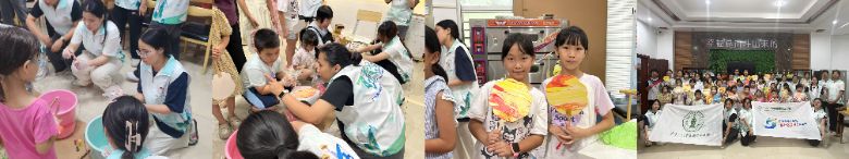 面韻鄉(xiāng)行突擊隊(duì)成員輔助孩子們親手體驗(yàn)漆扇制作并與其大合照 突擊隊(duì)成員攝