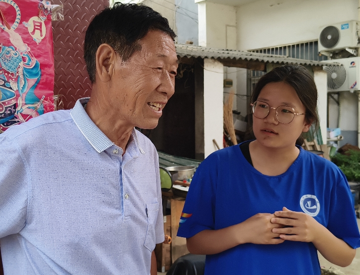 隊員們深入基層,走進一位大爺家中,了解到大爺獨自帶著孫子孫女生活,兒子和兒媳都外出打工,實踐隊隊員順勢說道:“現在村里年輕人外出、孩子上學,普通話成了和晚輩、外人交流的‘硬通貨’。”于是教了大爺一些簡單詞匯,大爺學得認真,感慨學會普通話,輔導孫子孫女作業時可以更順利,和游客聊天也能好好介紹咱村子,笑著說要把普通話學成“新本事” 。