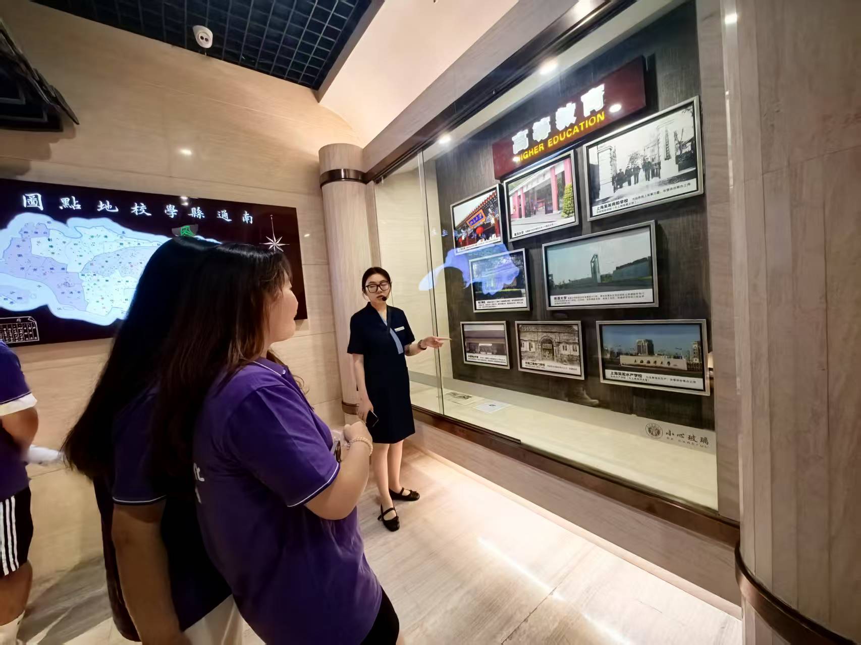 團隊成員踏入張謇紀念館“社會事業篇”的展區,目光首先被南通教育發展的史料吸引。張謇深知“教育為實業之母”,傾盡全力興辦教育。從創辦中國第一所師范學校——通州師范學校,到建立涵蓋學前教育、中小學教育等完備體系,再到發展職業教育、高等教育,那些珍貴的老照片、校史資料,見證著他為啟民智、育人才付出的心血。