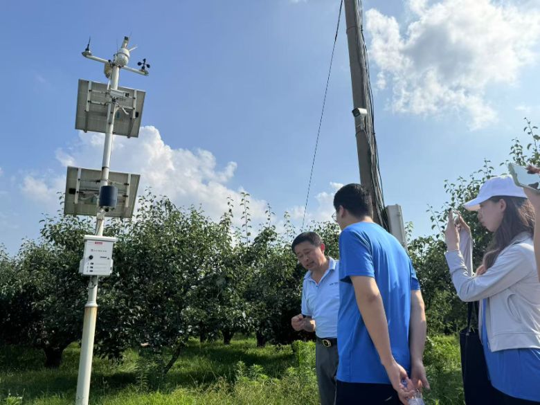 圖為實踐隊成員在梨園聽取工作人員介紹自動監測系統。汪青坪 供圖