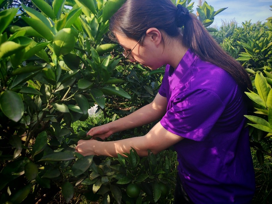 在登云坪臍橙園,“紅路”先鋒隊隊員們跟著農(nóng)技員唐書春學習 “定果疏果法”。“每根結(jié)果枝留 2 到 3 個果,像這樣把病果、密果剪掉,果子才能長得又大又甜。” 唐大叔話音剛落,“紅路”先鋒隊隊員們便蹲在果樹下仔細打量,輕輕撥開葉片尋找多余的果實。“紅路”先鋒隊隊員葉苘源捧著剛疏下的臍橙感嘆:“原來疏果就像給果樹‘減負’,把養(yǎng)分集中給好果子。” 夏日陽光透過樹葉灑在他們身上,汗?jié)n在衣背上暈開地圖,卻沒人顧得上擦汗,只專注于手中的臍橙。